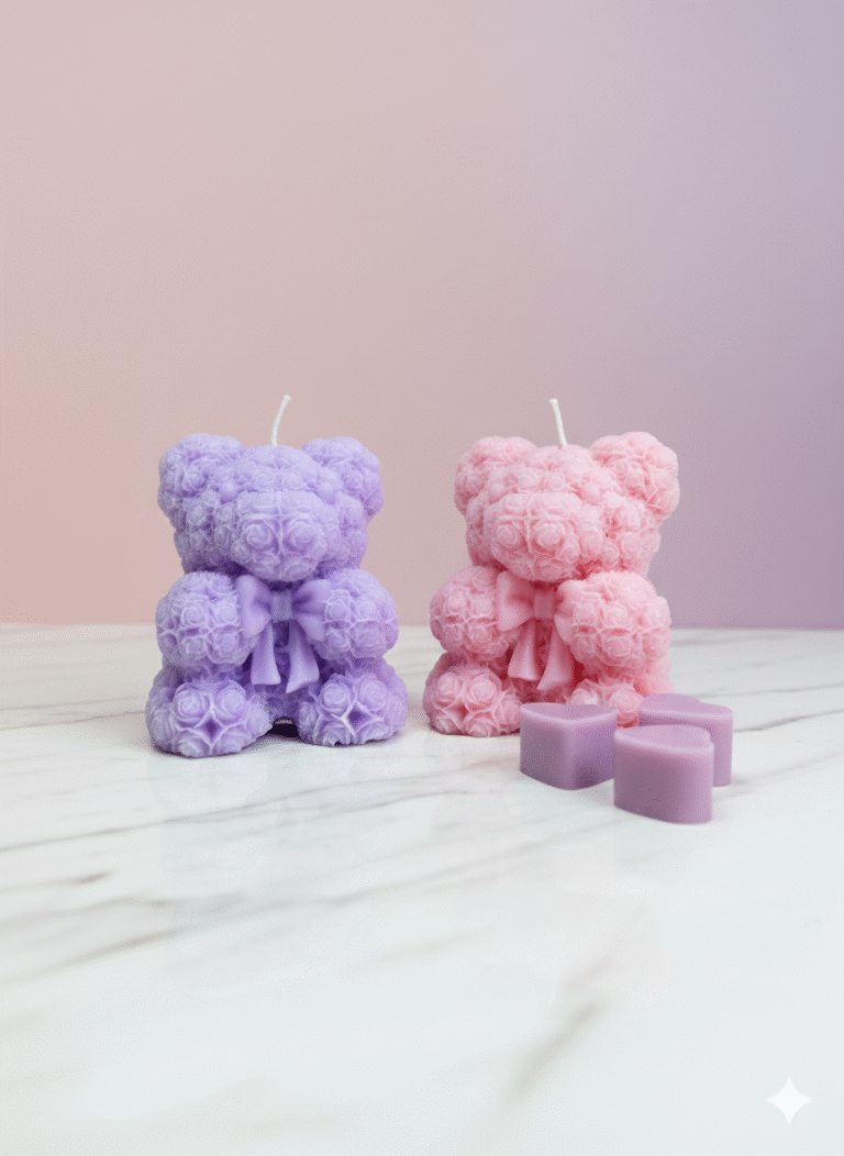 Rose Teddy Bear Shaped Decorative Scented Candle for Home Decor & Gifting (Pink & Purple)