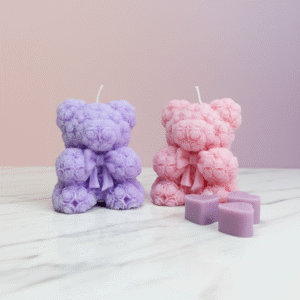 Rose Teddy Bear Shaped Decorative Scented Candle for Home Decor & Gifting (Pink & Purple)